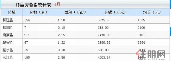 柳州市六个县份4月份商品房备案统计数据(来源:柳州房产交易管理网)
