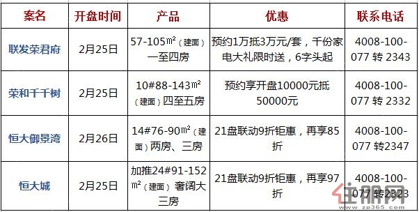 本周开盘产品以高层住宅为主,面积为57㎡到152㎡的一房至四房,选择较多,不管是刚需置业还是改善需求都能基本满足。联发荣君府和荣和千千树户型设计上,弹性面积较大,业主能根据需求自由灵活设计。恒大城和恒大御景湾保持恒大地产一贯的精装风格,为置业者省去装修的麻烦,比较省时省心。且为庆祝恒大广西荣获2016年广西套面金销售**,特此广西21盘联动推出9折优惠感恩八桂!