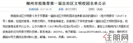 前段时间 柳州文明网也发布了拟推荐名单公示