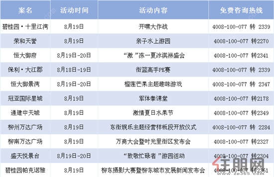 活动方面同样也是五彩缤纷,一扫上周的清冷,又迎来一轮“花式”撩法:泳池、冰淇淋、水果,抑或是篮球赛、游园趴,愉快的时光充满了整个**的闲暇。碧桂园十里江湾“开嘿”大作战,水上大冲关、缤纷灯光秀,欢乐“嘿”不停;恒大御府“激”冻一夏冰淇淋盛会,甜蜜美味吃不停;通建中天城**夏日水果节,享受水果盛宴的甜蜜诱惑……没错,本**柳州楼市各售楼部不仅准备了好吃的更有好玩的,这一波“安利”大家可要收好啦!
