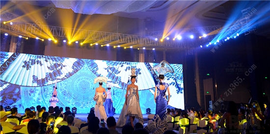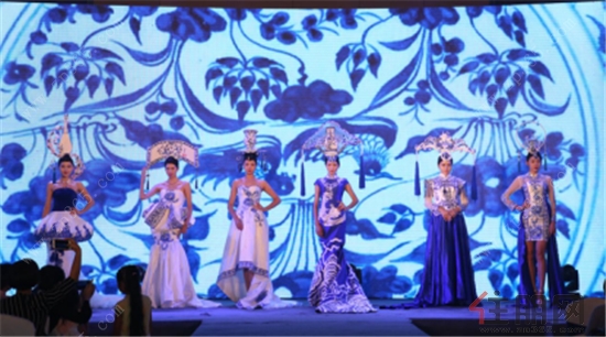 而后一场中国风走秀引得全场瞩目,超模身穿彩瓷样礼服,一步一景为现场嘉宾描摹出清秀素雅的古典气质。
